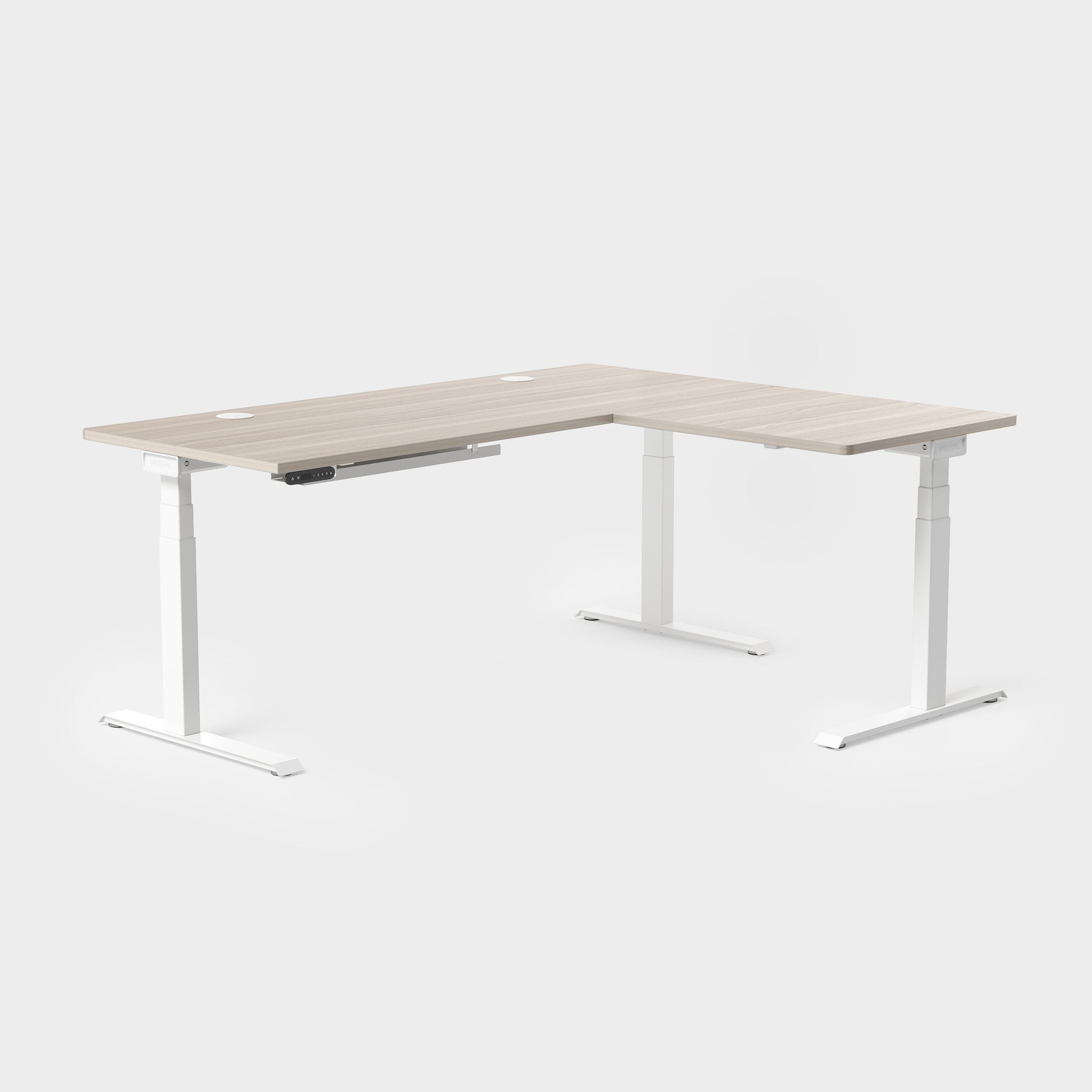 Vernal L-Shaped Standing Desks - Light Walnut/White
